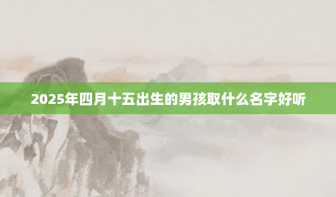 2025年四月十五出生的男孩取什么名字好听一个综合音律、义蕴、德操、形象设计、易理的好名字能为您塑造完美的形象。给您自信,给您能量,给您暗示指导,或可给您一个雄才大略、气宇轩昂的政治家形象;或可给您一个...2025-01-09